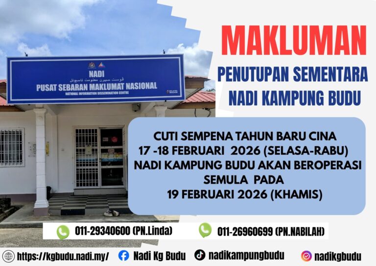 MAKLUMAN PENUTUPAN SEMENTARA OPERASI Dimaklumkan bahawa operasi NADI Kampung Budu akan ditutup sementara pada 17 – 18 Februari 2026 (Selasa – Rabu) sempena Cuti Umum Tahun Baharu Cina. NADI Kampung Budu akan beroperasi semula seperti biasa pada 19 Februari 2026 […]